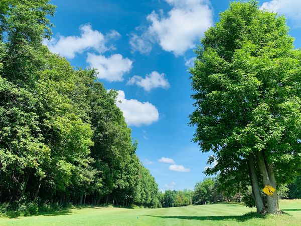 The longest hole on the course gives you the feeling of being wide open after playing hole #5. However, numerous trees line each side of the fairway for balls straying off course.